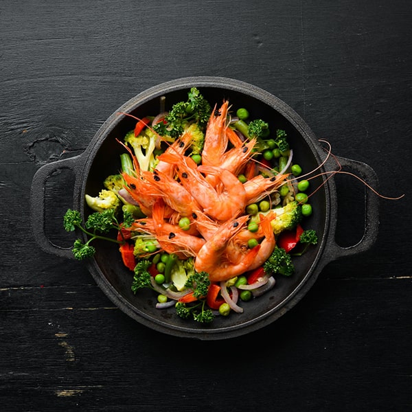 Scampis sautés sur plaque chauffante